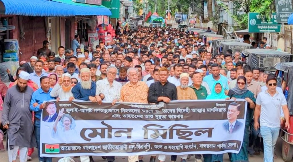 জুলাই আগস্ট শহীদদের স্মরণে বান্দরবানে বিএনপির মৌন মিছিল
