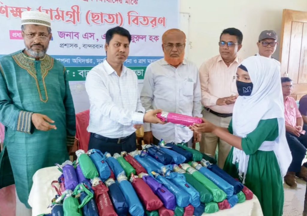 বান্দরবান পৌরসভায় গ্রামীণ অবকাঠামো ও রক্ষণাবেক্ষণ কর্মসূচির আওতায় পৌর এলাকার দরিদ্র শিক্ষার্থীদের মাঝে শিক্ষা সামগ্রী হিসেবে ছাতা বিতরণ করা হয়েছে। আজ